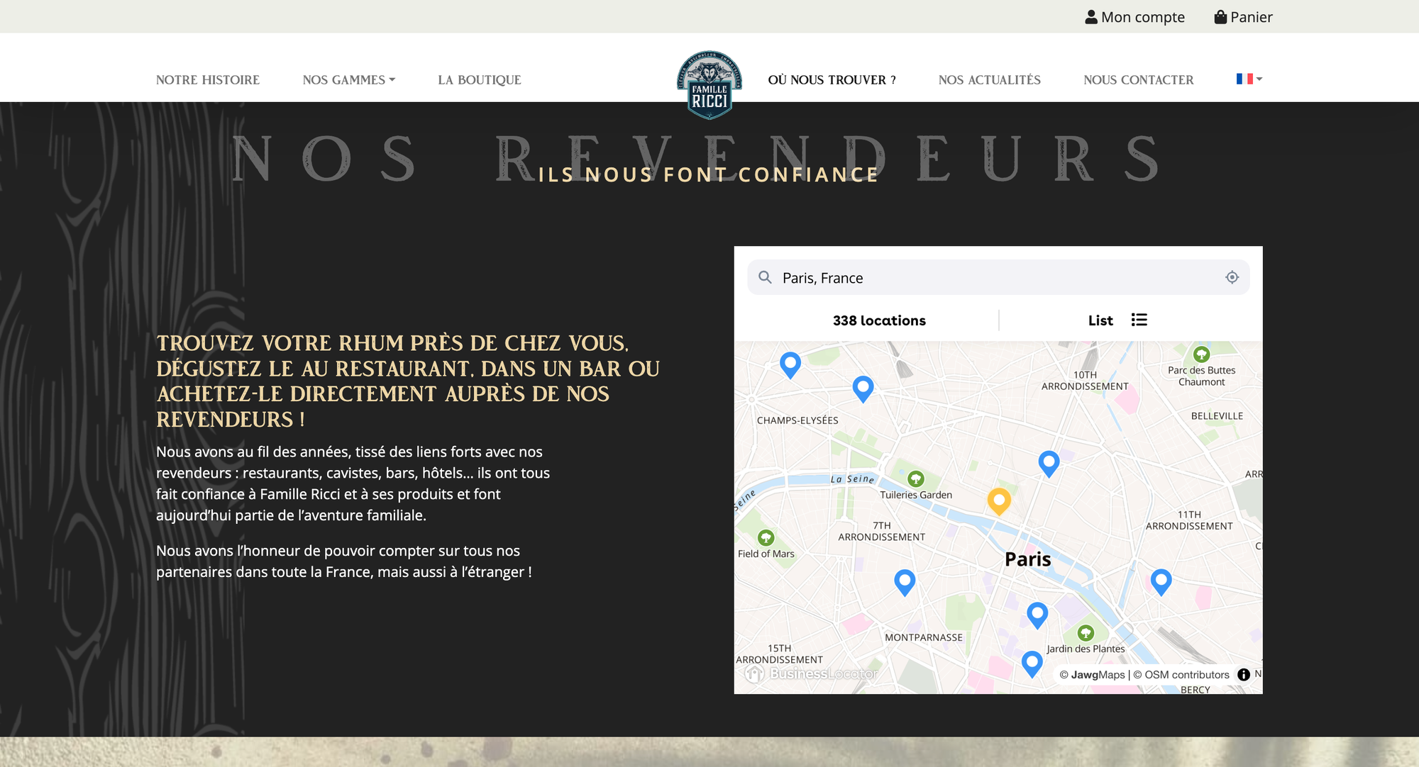 Découvrez de belles cartes interactives créées avec notre outil tout-en-un BusinessLocator pour référencer les agences Goldmarket, les experts Pretpro.fr, les revendeurs Famille Ricci et les photographes culinaires sur Pixel Gourmand.